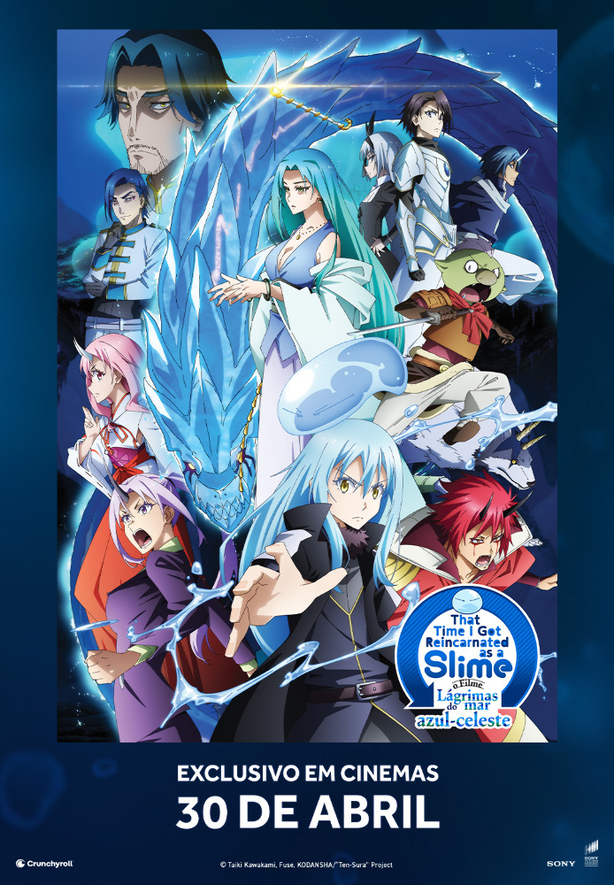 That Time I Got Reincarnated as a Slime O Filme - Lágrimas do Mar Azul-Celeste / That Time I Got Reincarnated as A Slime - Tears of the Azure Sea Depois de concluir a cerimónia de abertura da Federação do Reino Demónio Tempest, Rimuru e os seus companheiros são convidados pela Imperatriz Celestial Elmesia, da grande nação élfica – a Dinastia de Feiticeiros de Thalion – a visitar a sua ilha-resort privada. Enquanto o grupo desfruta das suas breves férias, surge uma mulher misteriosa chamada Yura. Um novo incidente desenrola-se contra o pano de fundo do vasto mar azul-celeste.
